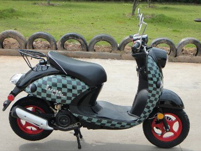 LxWxH 1650 x 640 x 1060 mm 64.96 x 25.2 x 41.73 inch Wheel base 1220 mm 48.03 inch Ground clearance 100 mm 3.94 inch Displacement 49.5cc Start method electric/kick Tank capacity 4.25 L Tire size 80/100-10 (F) 80/100-10 (R ) Brake Drum (F ) Drum (R) Max speed 50 km/h 31.07 mile/h Carton size 1700 x 550 x 850 mm 66.93 x 21.65 x 33.47 inch N.W. /G.W 80/105 kg 176/231 Lbs